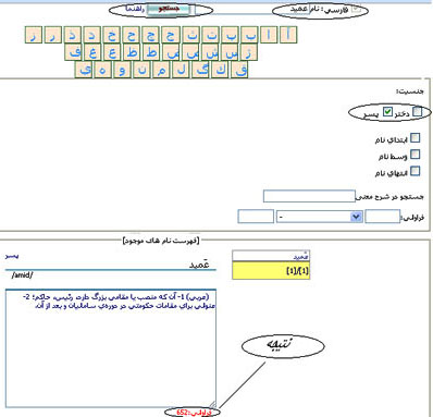 * مثلا برای اسم “زهرا” نتایج اینها اومد:(عربی) ۱- (در قدیم) روشن و درخشان؛ ۲- (اَعلام) از لقبهای حضرت فاطمه(س) دختر پیامبر اسلام(ص). + ( فاطمه.و فراوانی:۲۶۴۵۵۸۶ نفره.